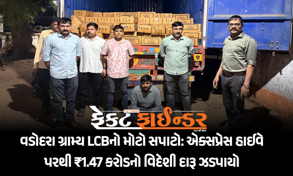 વડોદરા: રાજ્યમાં દારૂબંધીના કડક અમલ વચ્ચે વડોદરા ગ્રામ્ય પોલીસે “ઓપરેશન પરાક્રમ” હેઠળ અત્યાર સુધીનો સૌથી મોટો ગણનાપાત્ર કેસ શોધી કાઢ્યો છે. દિલ્હી-મુંબઈ એક્સપ્રેસ હાઈવે પર કરજણ...