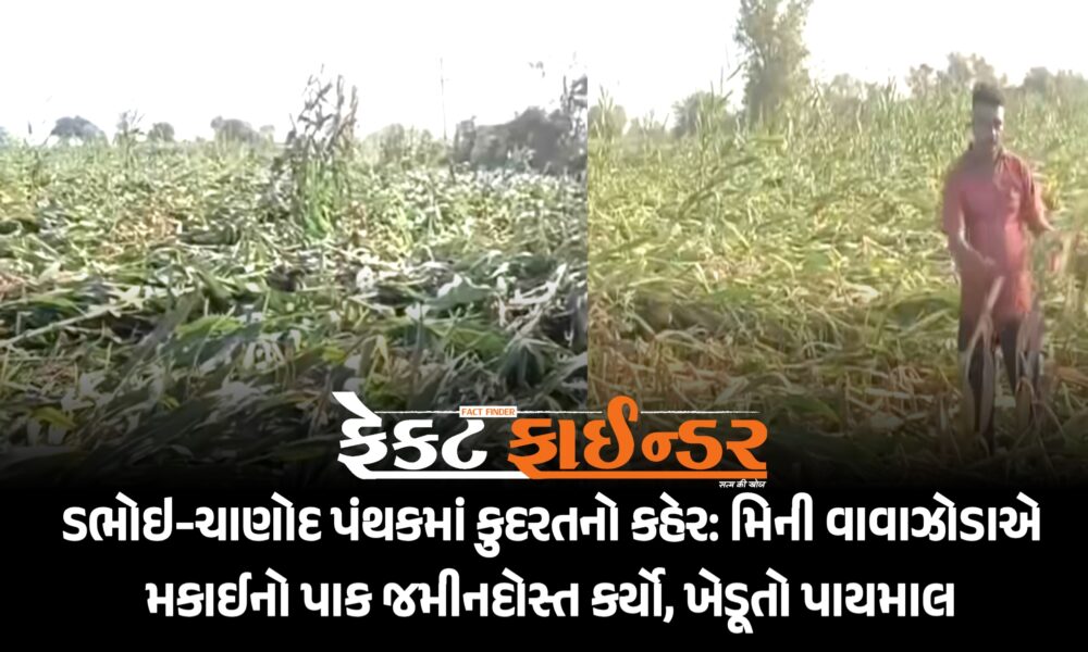 વડોદરા જિલ્લાના ડભોઇ અને ચાણોદ પંથકમાં ગઈકાલે સાંજે અચાનક બદલાયેલા હવામાન અને ફૂંકાયેલા ભારે પવને ખેડૂતોના મોઢે આવેલો કોળિયો છીનવી લીધો છે. મિની વાવાઝોડાને કારણે તૈયાર...