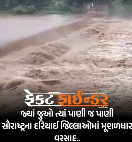 જ્યાં જુઓ ત્યાં પાણી જ પાણી સૌરાષ્ટ્રના દરિયાઈ જિલ્લાઓમાં મૂશળધાર વરસાદ..