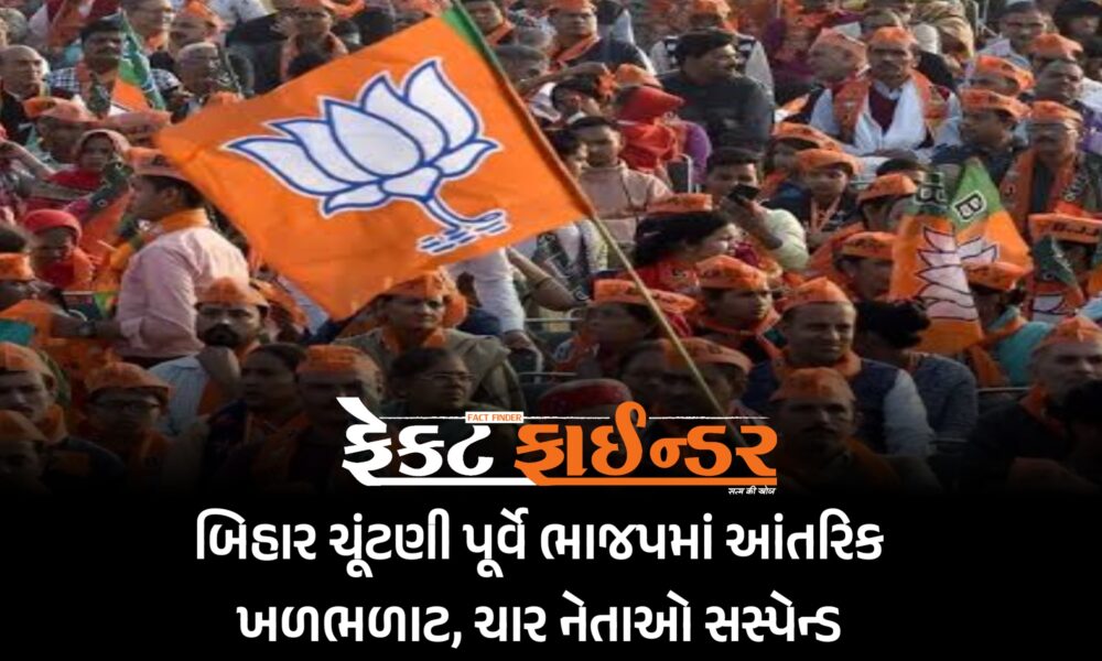 “બિહાર ચૂંટણી પૂર્વે ભાજપનો કડક પગલાં – ચાર બળવાખોર નેતાઓને પાર્ટીમાંથી છ વર્ષ માટે હાંકી કાઢ્યા” બિહાર વિધાનસભા ચૂંટણી પૂર્વે ભારતીય જનતા પાર્ટીએ પક્ષવિરુદ્ધ પ્રવૃત્તિઓ કરતા...