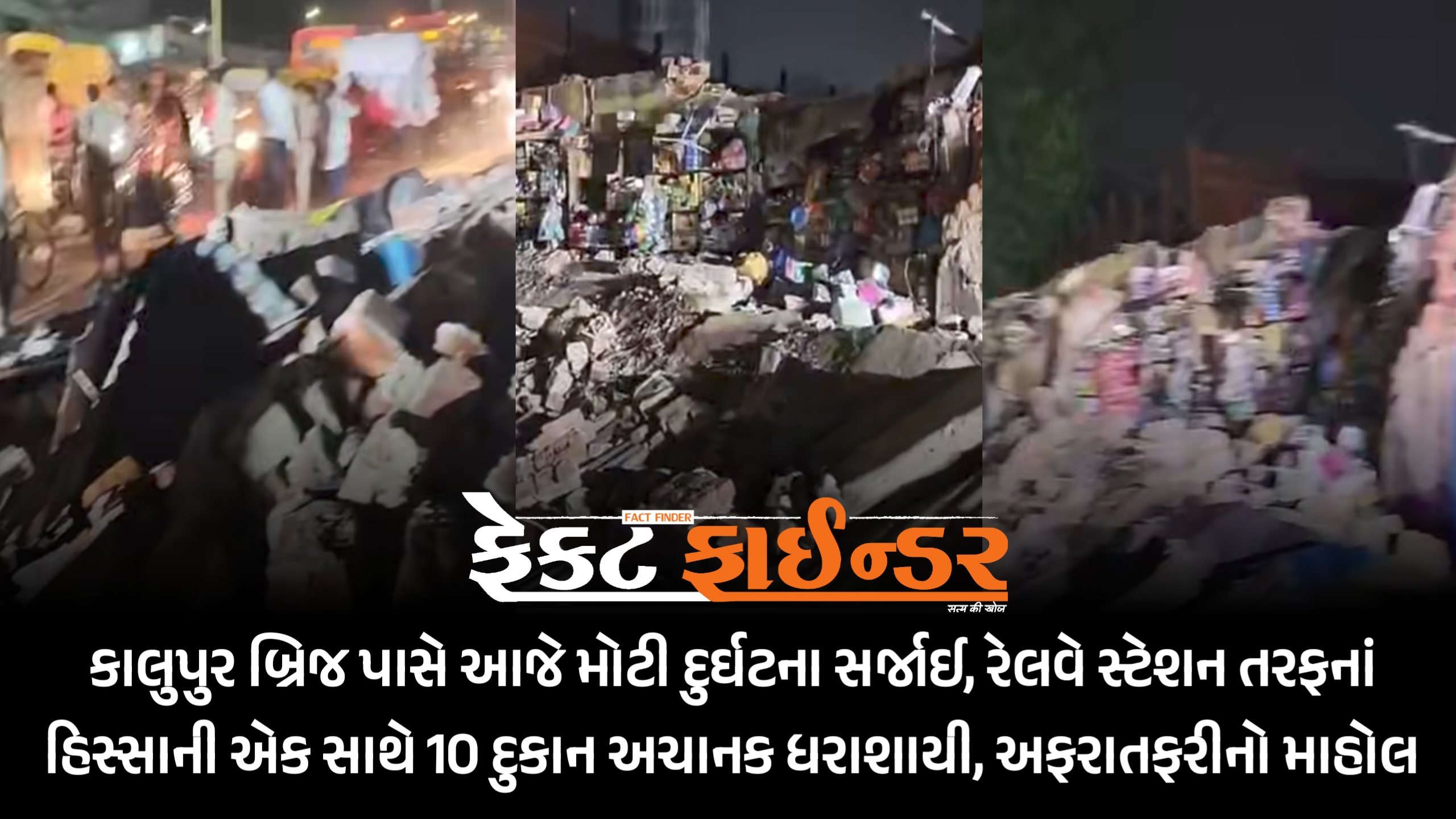 કાલુપુર બ્રિજ પાસે આજે મોટી દુર્ઘટના સર્જાઈ, રેલવે સ્ટેશન તરફનાં હિસ્સાની એક સાથે 10 દુકાન અચાનક ધરાશાયી,અફરાતફરીનો માહોલ