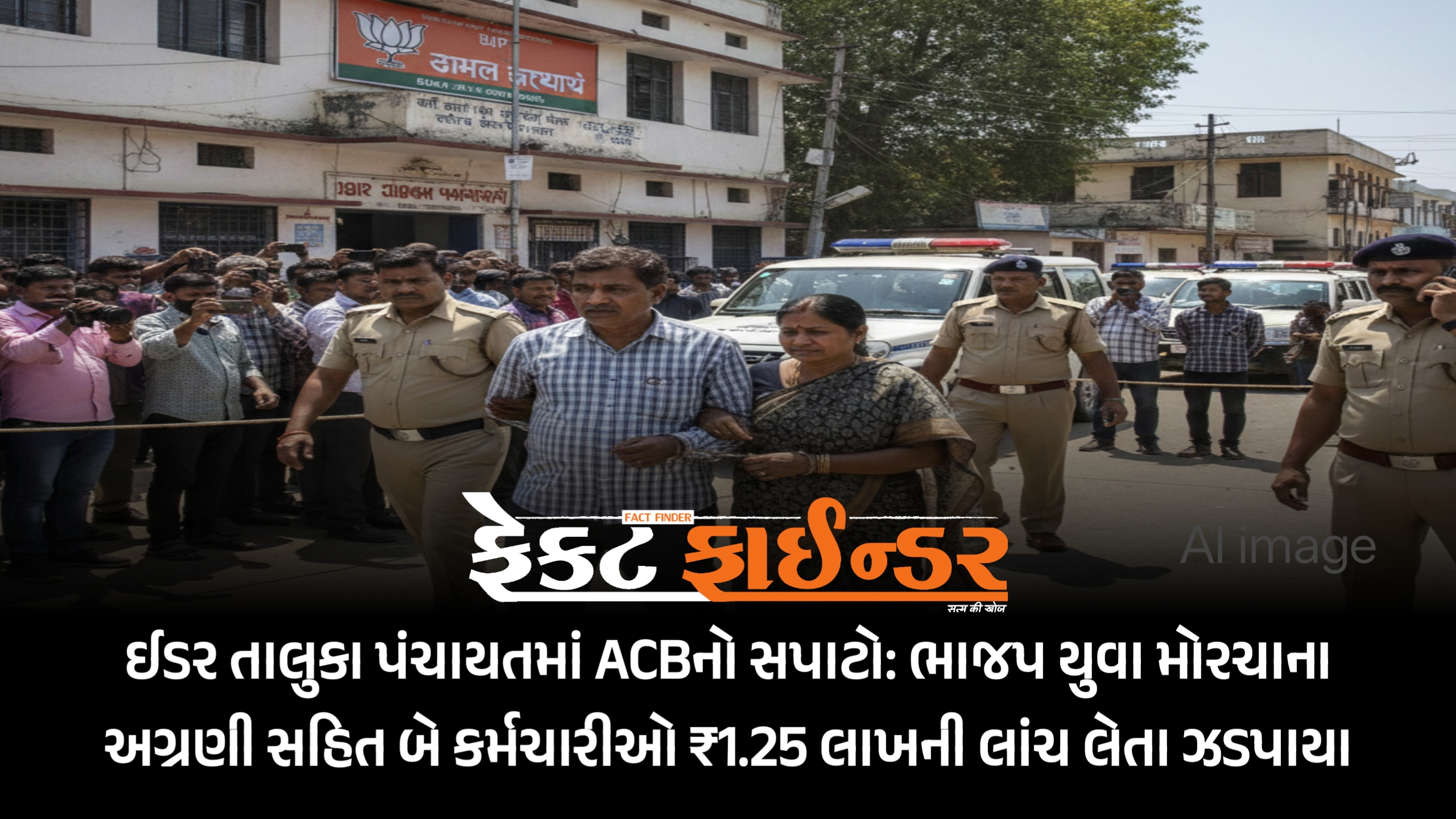 ઈડર તાલુકા પંચાયતમાં ACBનો સપાટો: ભાજપ યુવા મોરચાના અગ્રણી સહિત બે કર્મચારીઓ ₹1.25 લાખની લાંચ લેતા ઝડપાયા