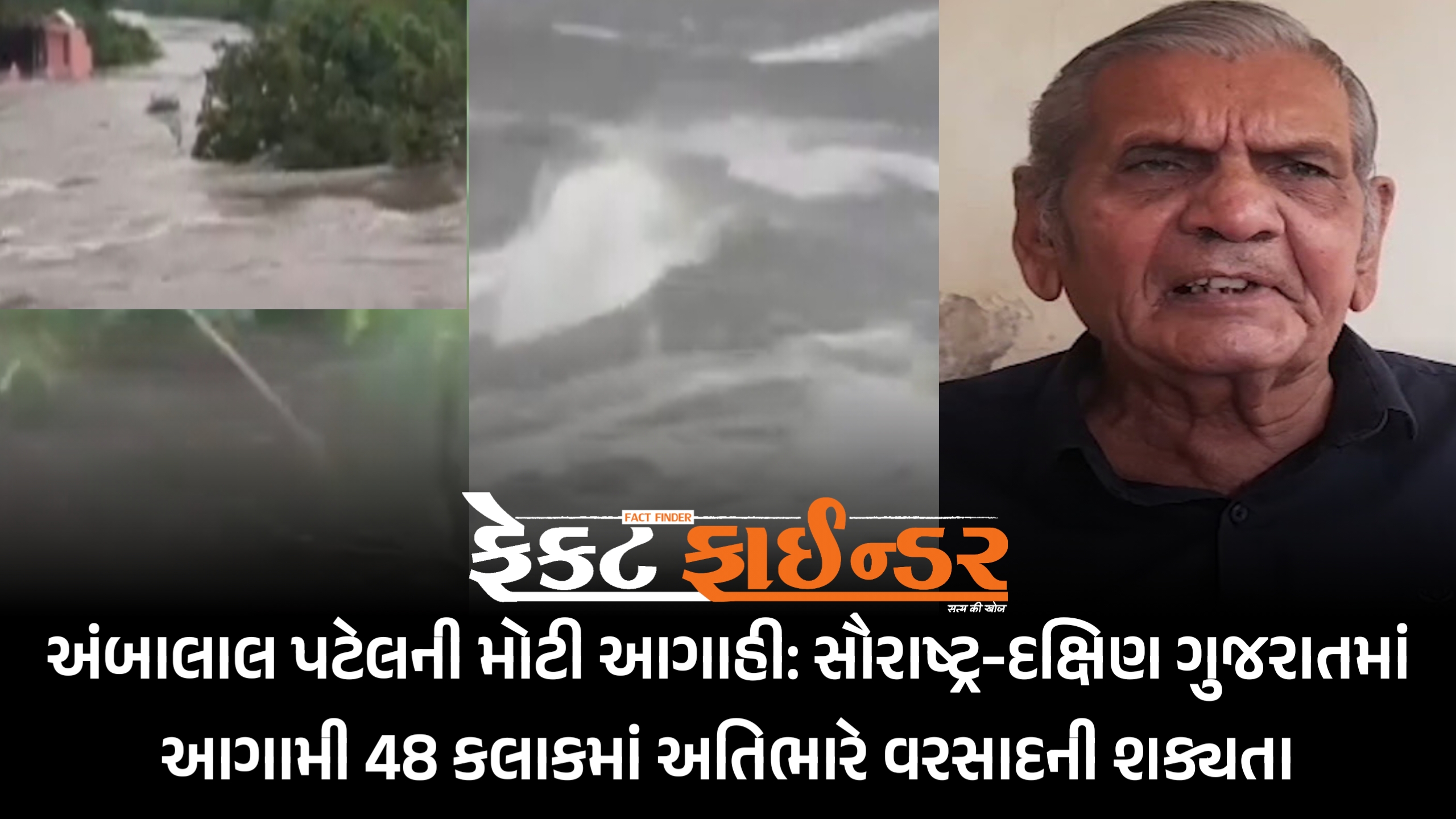 અંબાલાલ પટેલની મોટી આગાહી: સૌરાષ્ટ્ર-દક્ષિણ ગુજરાતમાં આગામી 48 કલાકમાં અતિભારે વરસાદની શક્યતા