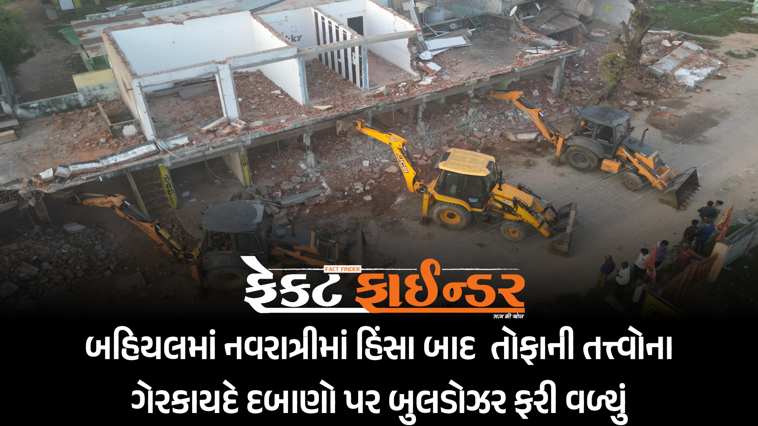 બહિયલમાં નવરાત્રીમાં હિંસા બાદ તોફાની તત્ત્વોના ગેરકાયદે દબાણો પર બુલડોઝર ફરી વળ્યું