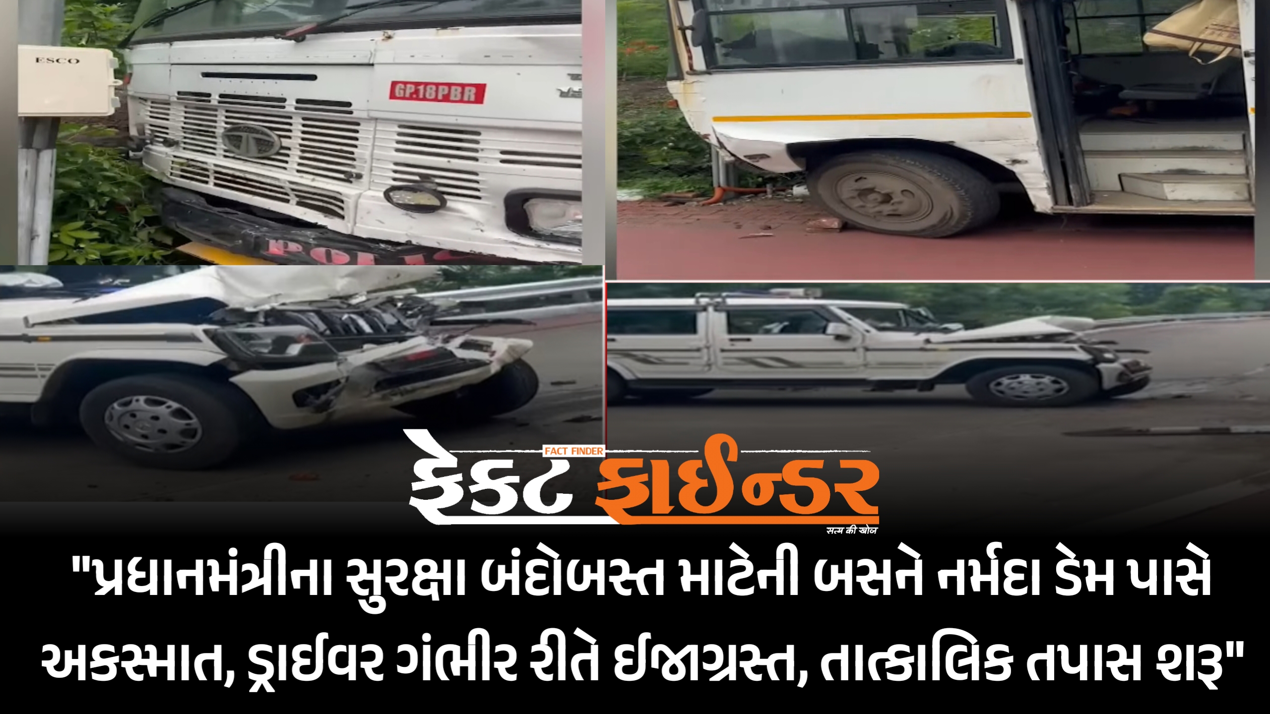 “પ્રધાનમંત્રીના સુરક્ષા બંદોબસ્ત માટેની બસને નર્મદા ડેમ પાસે અકસ્માત, ડ્રાઈવર ગંભીર રીતે ઈજાગ્રસ્ત, તાત્કાલિક તપાસ શરૂ”