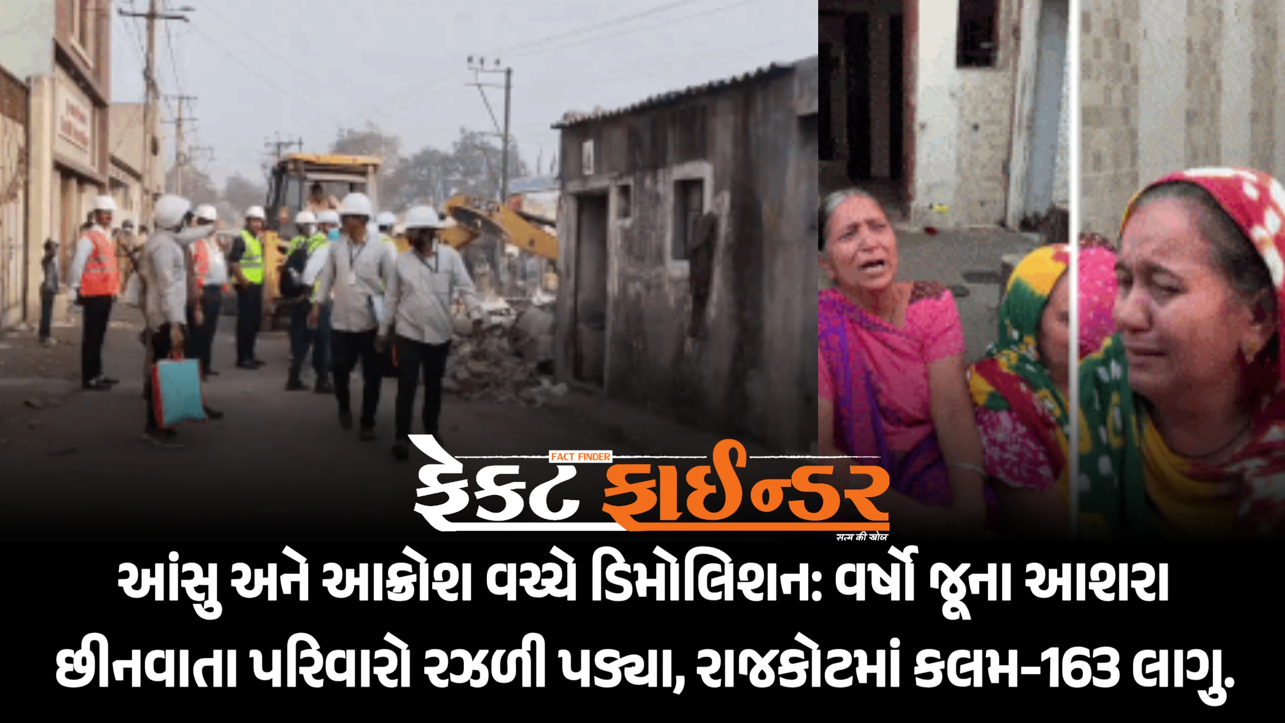 આંસુ અને આક્રોશ વચ્ચે ડિમોલિશન: વર્ષો જૂના આશરા છીનવાતા પરિવારો રઝળી પડ્યા, રાજકોટમાં કલમ-163 લાગુ.