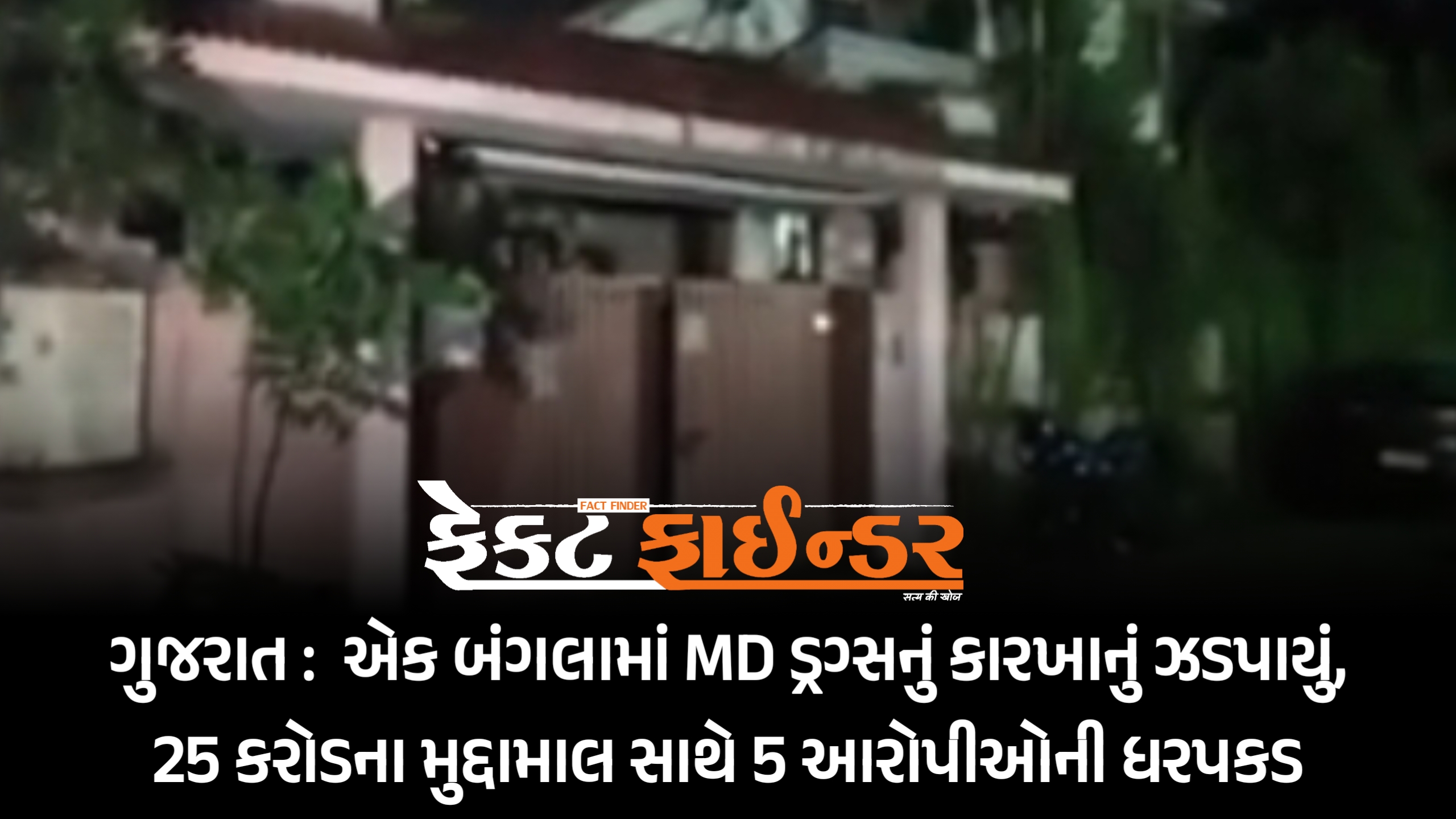 ગુજરાત : એક બંગલામાં MD ડ્રગ્સનું કારખાનું ઝડપાયું, 25 કરોડના મુદ્દામાલ સાથે 5 આરોપીઓની ધરપકડ