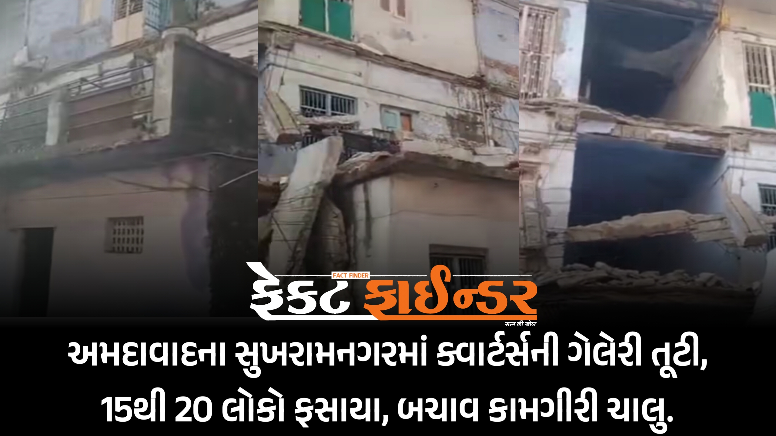 અમદાવાદના સુખરામનગરમાં ક્વાર્ટર્સની ગેલેરી તૂટી, 15થી 20 લોકો ફસાયા, બચાવ કામગીરી ચાલુ.