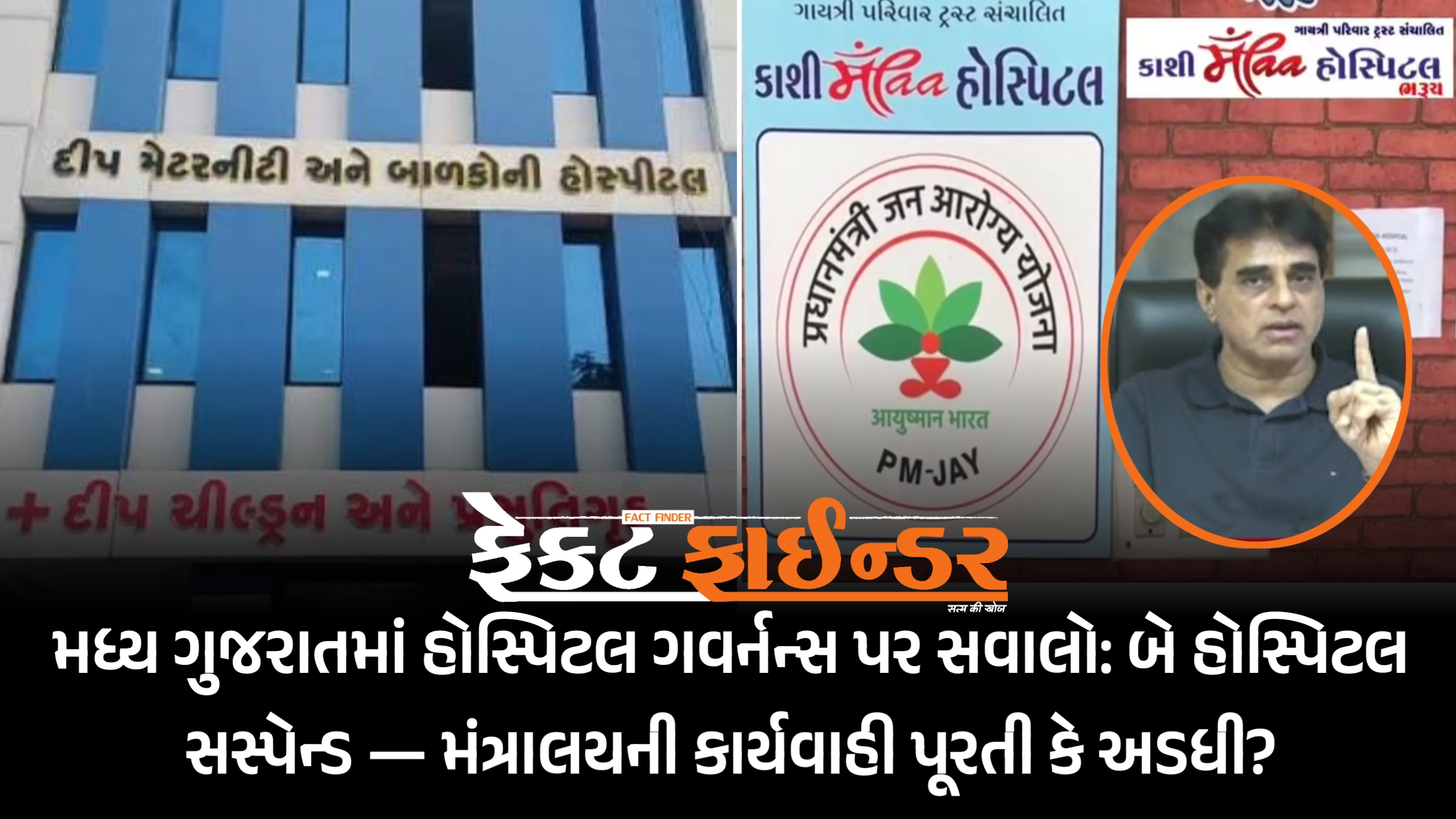મધ્ય ગુજરાતમાં હોસ્પિટલ ગવર્નન્સ પર સવાલો: બે હોસ્પિટલ સસ્પેન્ડ — મંત્રાલયની કાર્યવાહી પૂરતી કે અડધી?