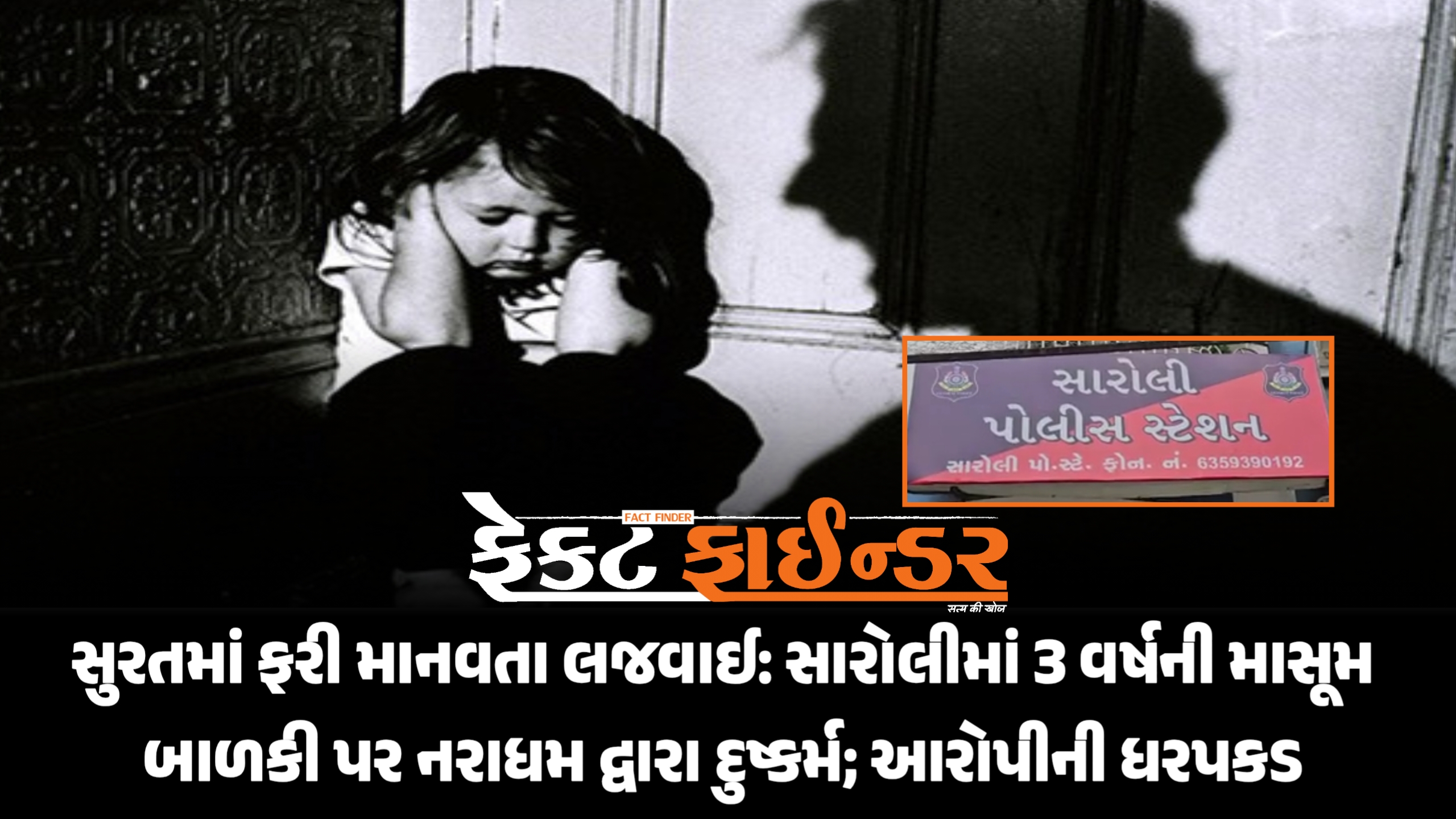 સુરતમાં ફરી માનવતા લજવાઈ: સારોલીમાં 3 વર્ષની માસૂમ બાળકી પર નરાધમ દ્વારા દુષ્કર્મ; આરોપીની ધરપકડ