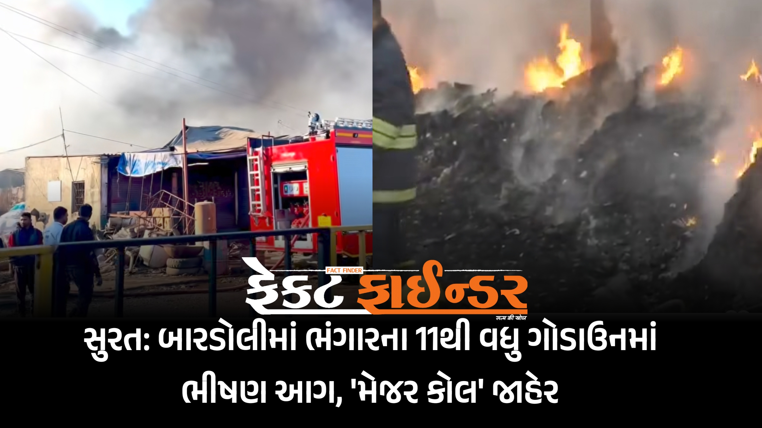સુરત: બારડોલીમાં ભંગારના 11થી વધુ ગોડાઉનમાં ભીષણ આગ, ‘મેજર કોલ’ જાહેર