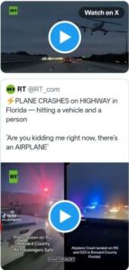 ફ્લોરિડા હાઇવે પર વિમાન અકસ્માત: કાર ચાલક મહિલાનું મોત