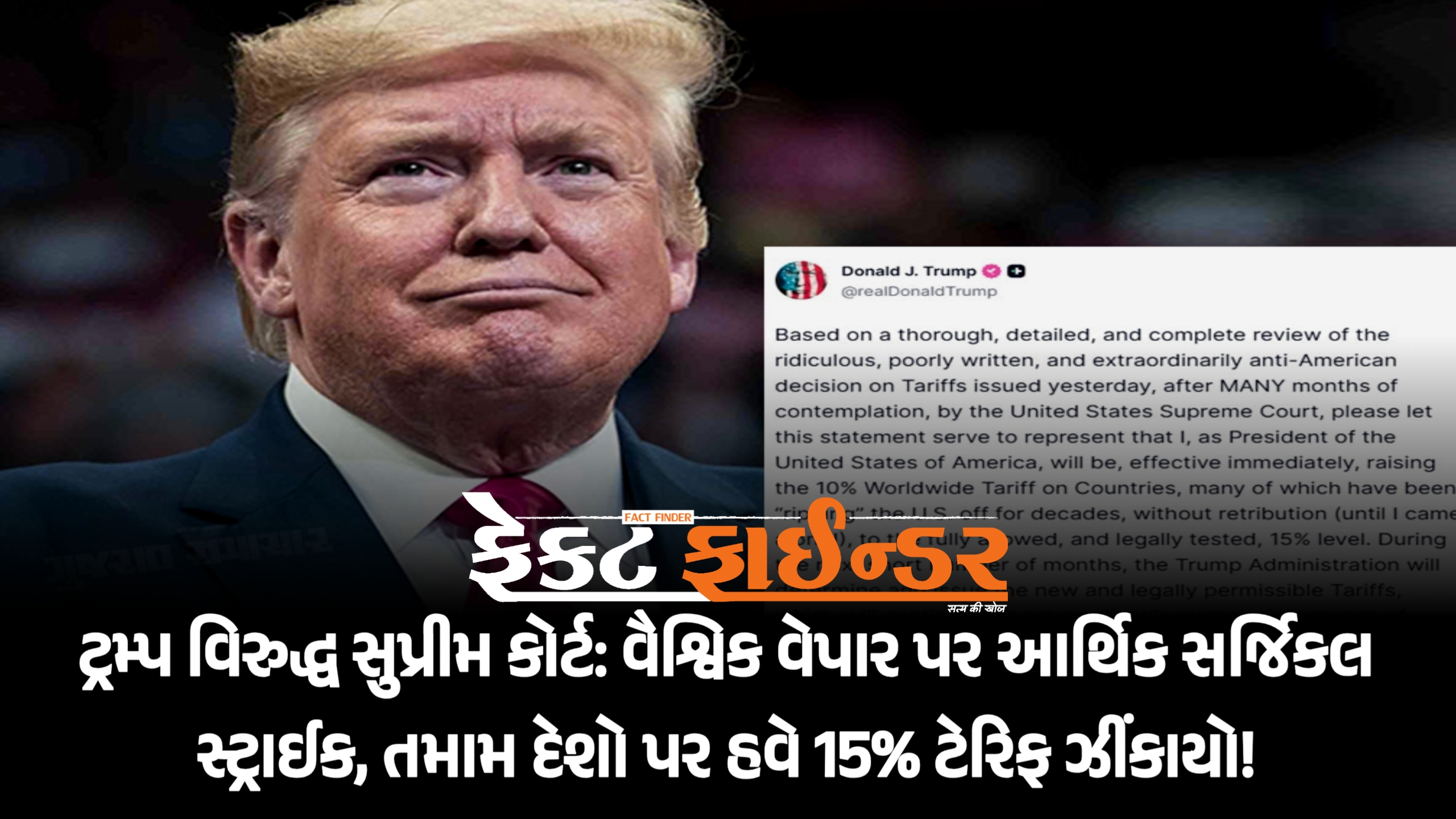 ટ્રમ્પ વિરુદ્ધ સુપ્રીમ કોર્ટ: વૈશ્વિક વેપાર પર આર્થિક સર્જિકલ સ્ટ્રાઈક, તમામ દેશો પર હવે 15% ટેરિફ ઝીંકાયો!