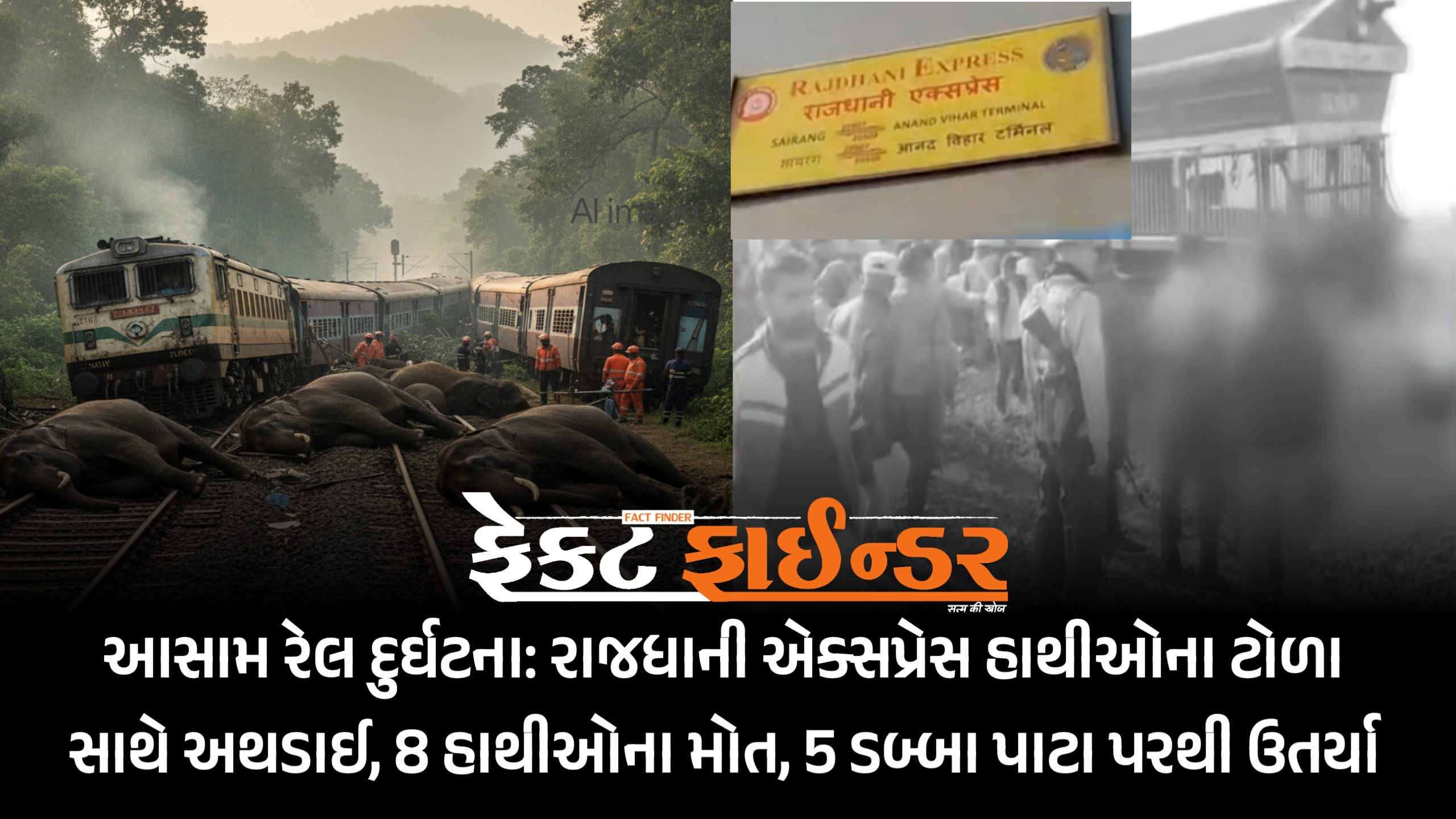 આસામ રેલ દુર્ઘટના: રાજધાની એક્સપ્રેસ હાથીઓના ટોળા સાથે અથડાઈ, 8 હાથીઓના મોત, 5 ડબ્બા પાટા પરથી ઉતર્યા