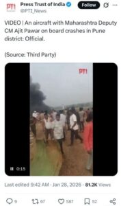મહારાષ્ટ્રના રાજકારણમાં કાળો દિવસ – અજિત પવારનું વિમાન દુર્ઘટનામાં નિધન