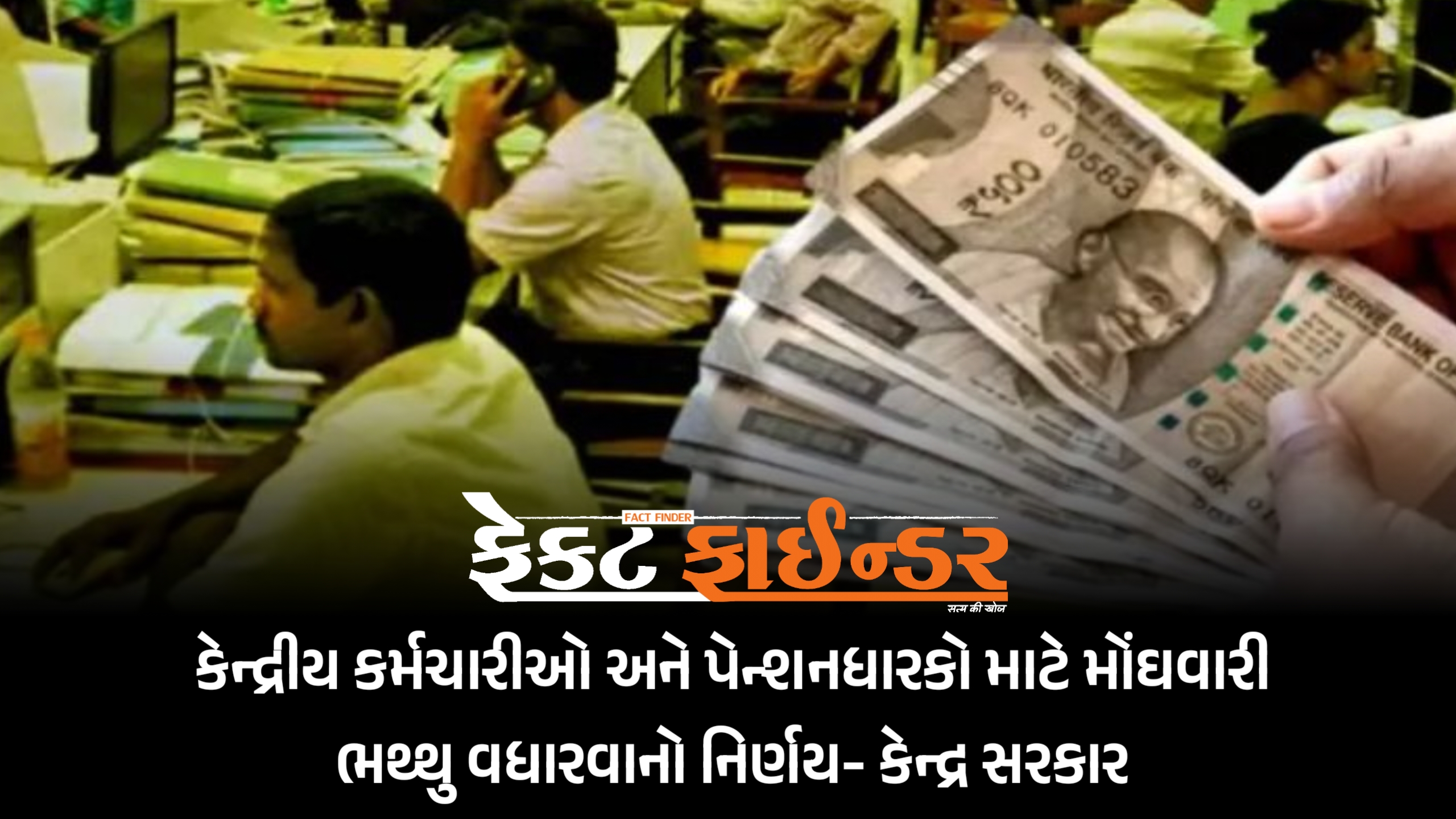 કેન્દ્રીય કર્મચારીઓ અને પેન્શનધારકો માટે મોંઘવારી ભથ્થુ વધારવાનો નિર્ણય- કેન્દ્ર સરકાર