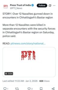 છત્તીસગઢના બસ્તરમાં સુરક્ષાદળોનો મોટો પ્રહાર: સુકમા અને બીજાપુરમાં 12 નક્સલીઓ ઠાર