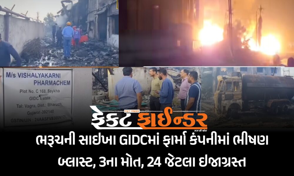 વિસ્ફોટ અને આગથી સમગ્ર વિસ્તાર ધ્રુજી ઉઠ્યો અને છ કિલોમીટરના વિસ્તારમાં અસર થઈ. ભરૂચ જિલ્લાના સાઇખા GIDC વિસ્તારમાં આવેલી વિશાલ્યાકર ફાર્મામાં મધરાતે થયેલા ભયંકર વિસ્ફોટથી વિસ્તારમાં...