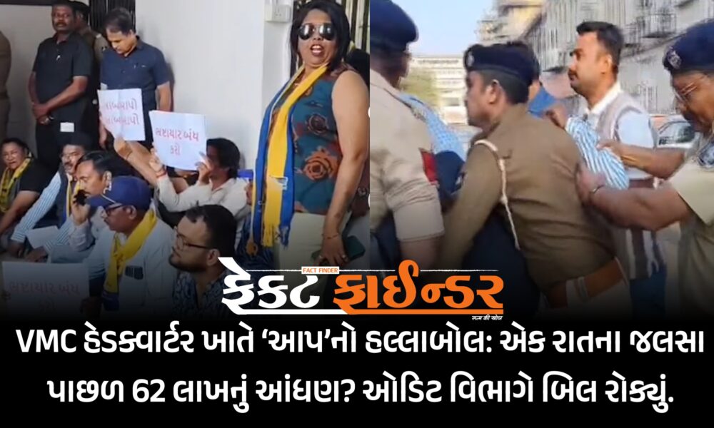 VMC હેડક્વાર્ટર ખાતે ‘આપ’નો હલ્લાબોલ: એક રાતના જલસા પાછળ 62 લાખનું આંધણ? ઓડિટ વિભાગે બિલ રોક્યું.