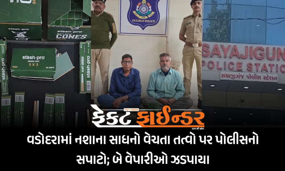 🙏સંસ્કારી નગરી વડોદરામાં યુવા પેઢીને નશાના માર્ગે ધકેલતા વેપારીઓ સામે પોલીસે લાલ આંખ કરી છે. સયાજીગંજ પોલીસે શહેરના બે અલગ-અલગ વિસ્તારોમાં દરોડા પાડીને ‘ગોગો સ્મોકિંગ કોન’...