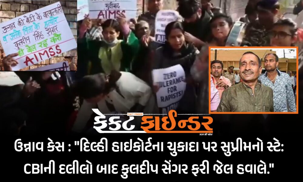 હાઈકોર્ટને ઝટકો: દિલ્હી હાઈકોર્ટના જામીન આપવાના આદેશને સર્વોચ્ચ અદાલતે ફગાવ્યો. દેશભરમાં ચકચાર મચાવનારા ઉન્નાવ દુષ્કર્મ કેસમાં આજે સુપ્રીમ કોર્ટે એક અત્યંત મહત્વનો અને કડક નિર્ણય લીધો...