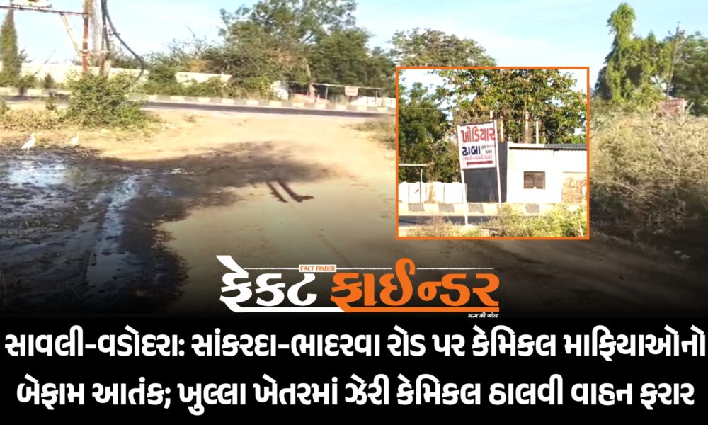 સાવલી-વડોદરા: સાંકરદા-ભાદરવા રોડ પર કેમિકલ માફિયાઓનો બેફામ આતંક; ખુલ્લા ખેતરમાં ઝેરી કેમિકલ ઠાલવી વાહન ફરાર