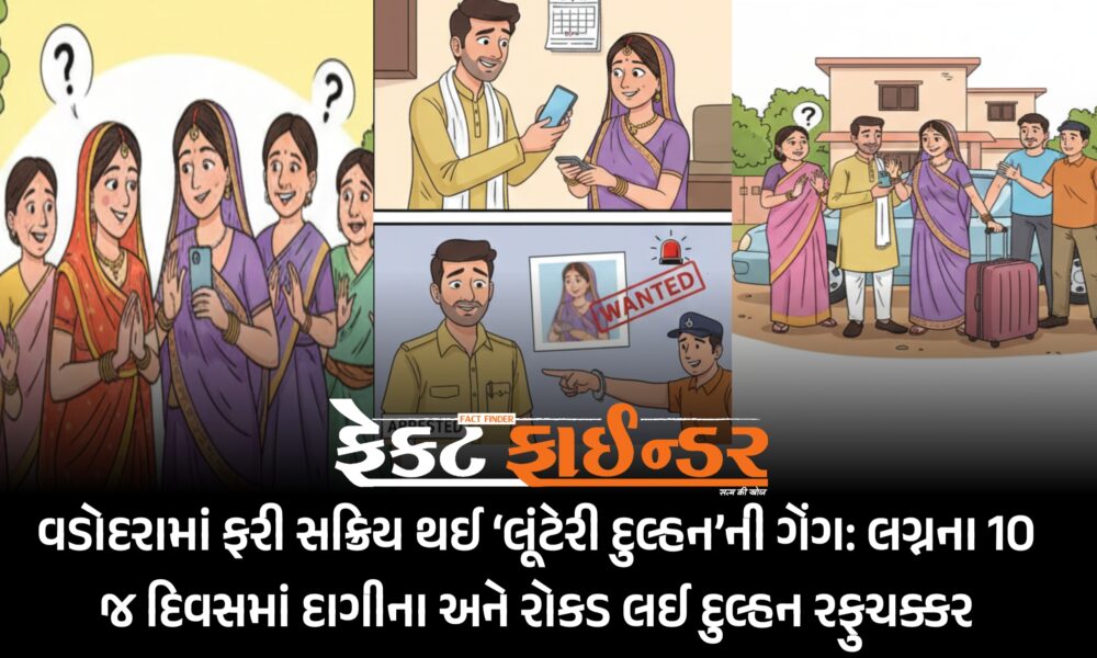 લગ્નના પવિત્ર બંધનને પૈસા કમાવવાનું સાધન બનાવતી ‘લૂંટેરી દુલ્હન’ની વધુ એક ચોંકાવનારી ઘટના સામે આવી છે. સુરેન્દ્રનગરના એક પરિવાર સાથે લગ્નના નામે લાખો રૂપિયાની છેતરપિંડી આચરવામાં...