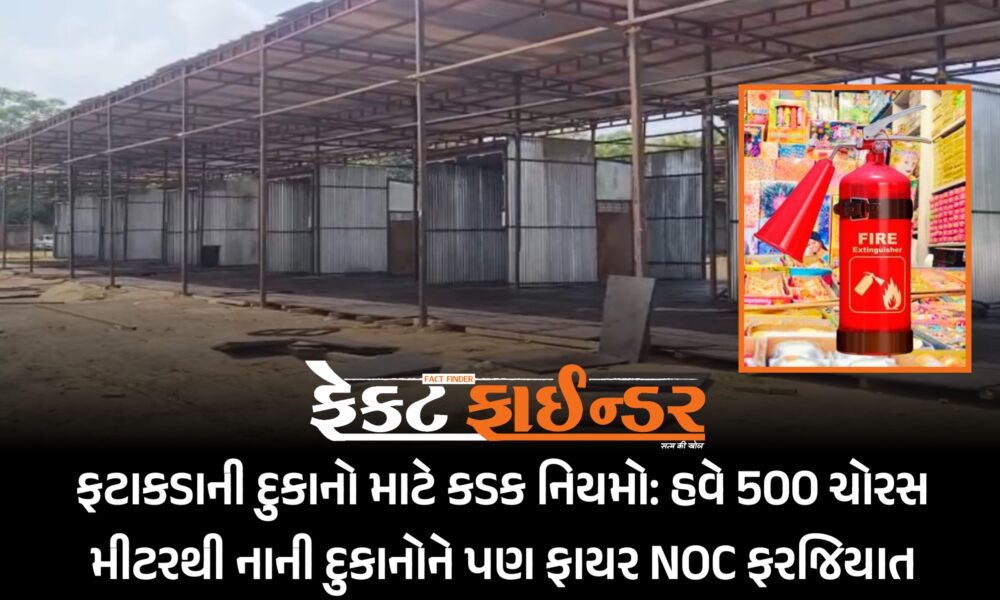 ગુજરાત સરકારના ગૃહ વિભાગે દિવાળી પહેલા ફટાકડાની દુકાનો માટે ફાયર NOC ફરજિયાત કરી, 500 ચોરસ મીટરથી ઓછી દુકાનોને પણ નિયમ લાગુ ગુજરાતમાં આગામી દિવાળી તહેવાર પહેલાં...