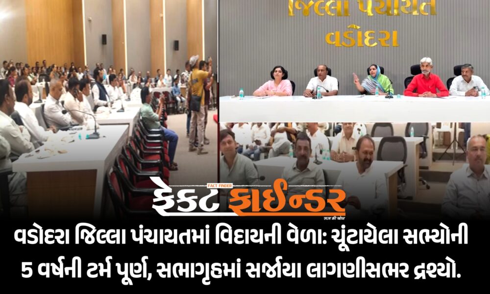 વડોદરા જિલ્લા પંચાયતમાં વિદાયની વેળા: ચૂંટાયેલા સભ્યોની 5 વર્ષની ટર્મ પૂર્ણ, સભાગૃહમાં સર્જાયા લાગણીસભર દ્રશ્યો.