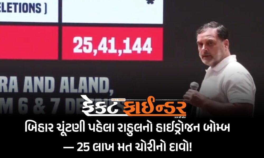 કોંગ્રેસના નેતા રાહુલ ગાંધીએ “વોટ ચોરી” મુદ્દે સરકાર તથા ઇસી (ચૂંટણી પંચ) પર ફરી ભારે હુમલો કર્યો,આજે (બુધવાર) ફરી એક મહત્વપૂર્ણ પ્રેસ કોન્ફરન્સ રાખવામાં આવી રહી...