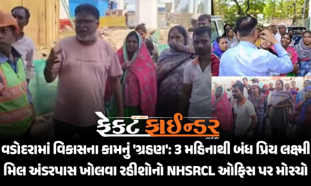 વડોદરામાં વિકાસના કામનું ‘ગ્રહણ’: 3 મહિનાથી બંધ પ્રિય લક્ષ્મી મિલ અંડરપાસ ખોલવા રહીશોનો NHSRCL ઓફિસ પર મોરચો