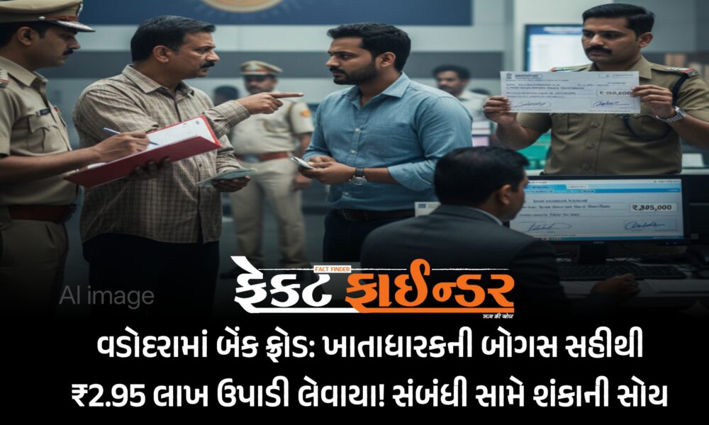 💰 વડોદરામાં બેંક ખાતાધારક સાથે મોટી છેતરપિંડીનો બનાવ સામે આવ્યો છે. મુંબઈના રહેવાસી બેંક ખાતાધારકના ચેકનો દુરુપયોગ કરીને, બોગસ સહી મારફતે તેમના ખાતામાંથી રૂ. 2.95 લાખ...