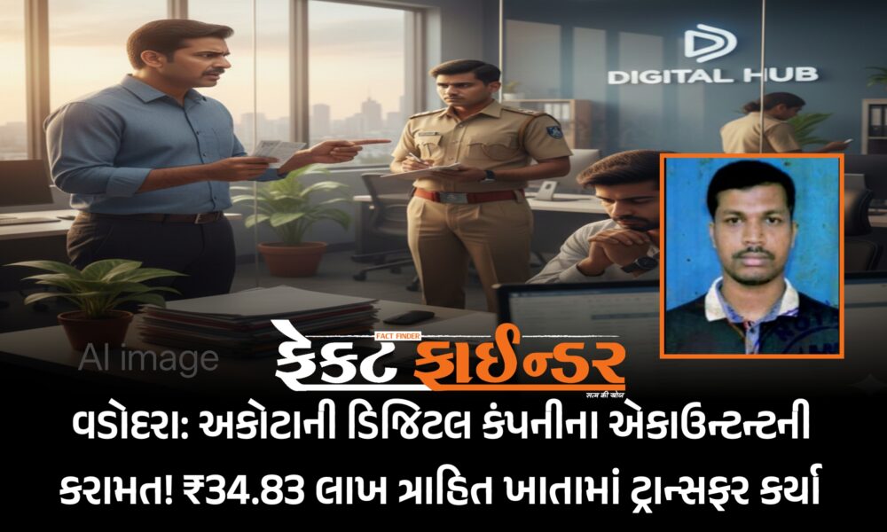 સંસ્કારી નગરી વડોદરામાં એક વિશ્વાસઘાત અને છેતરપિંડીની મોટી ઘટના સામે આવી છે. અકોટા વિસ્તારમાં આવેલી એક ડિજિટલ મીડિયા ઓફિસના એકાઉન્ટન્ટે જ પોતાના માલિકનો ભરોસો તોડીને લાખો...