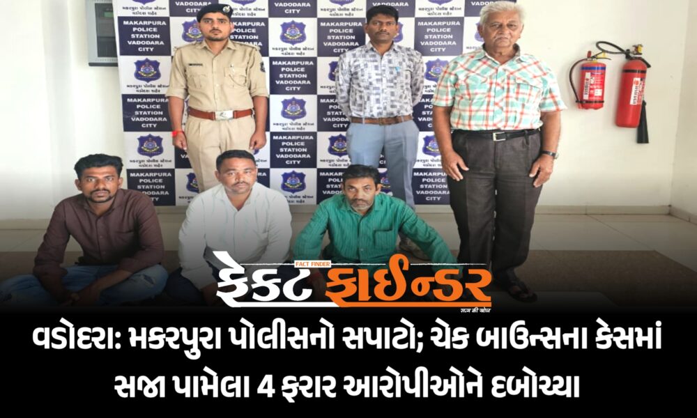 વડોદરા શહેરમાં સજા વોરંટના આરોપીઓને પકડી પાડવા કપુરાઈ પોલીસ સ્ટેશને મોટી સફળતા મેળવી છે. ચેક બાઉન્સના કેસમાં કોર્ટ દ્વારા સજા ફટકારવામાં આવ્યા બાદ ફરાર થયેલા આરોપીને...
