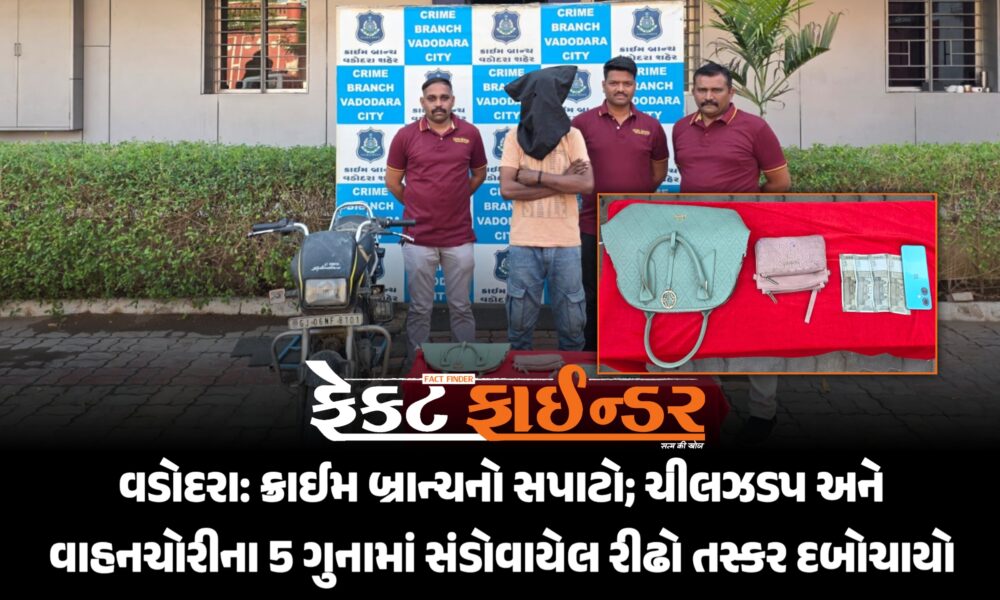 વડોદરાના સયાજીગંજ વિસ્તારમાં મોબાઈલ સ્નેચિંગની ઘટના આચરનાર બે રીઢા શખ્સોને સયાજીગંજ પોલીસે ગણતરીના કલાકોમાં ઝડપી પાડ્યા છે. પોલીસ કમિશનર શ્રી નરસિંહા કોમારની સૂચના અને એ.સી.પી. ડી.જે....