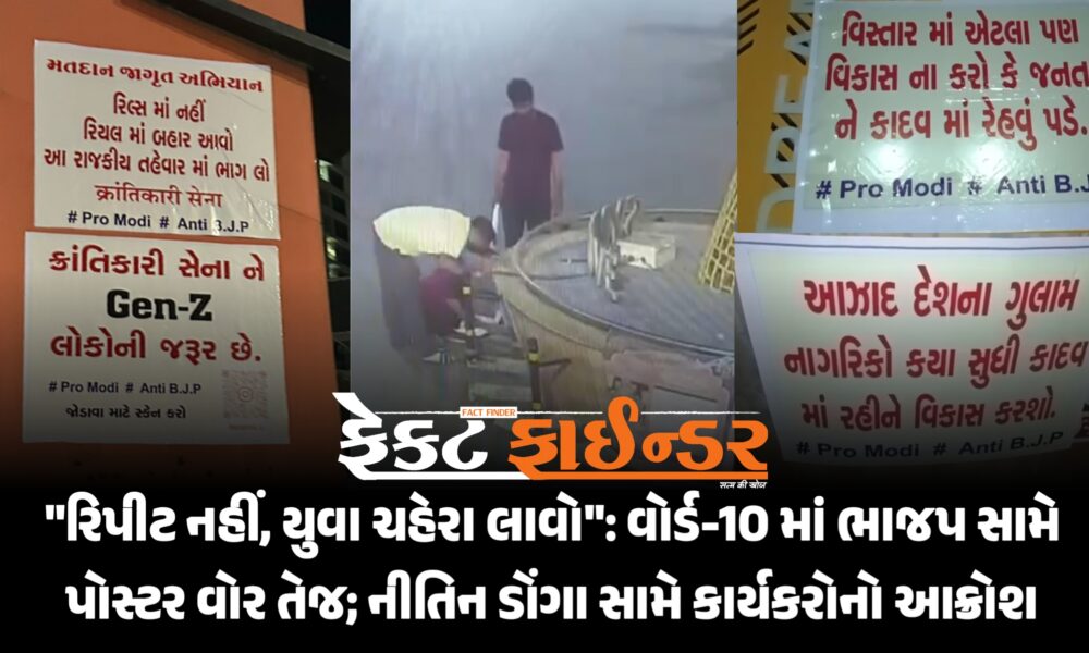 “રિપીટ નહીં, યુવા ચહેરા લાવો”: વોર્ડ-10 માં ભાજપ સામે પોસ્ટર વોર તેજ; નીતિન ડોંગા સામે કાર્યકરોનો આક્રોશ