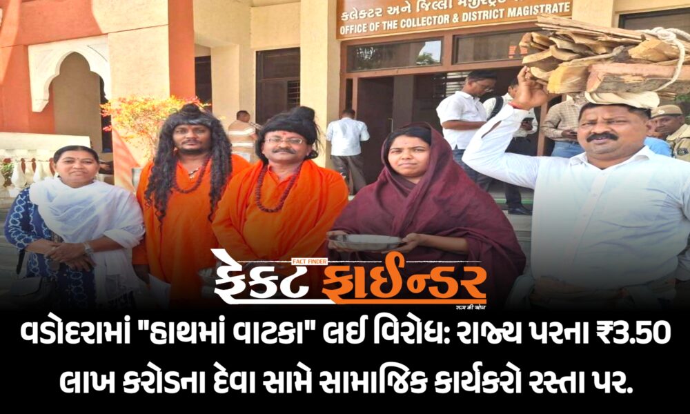 વડોદરામાં “હાથમાં વાટકા” લઈ વિરોધ: રાજ્ય પરના ₹3.50 લાખ કરોડના દેવા સામે સામાજિક કાર્યકરો રસ્તા પર.
