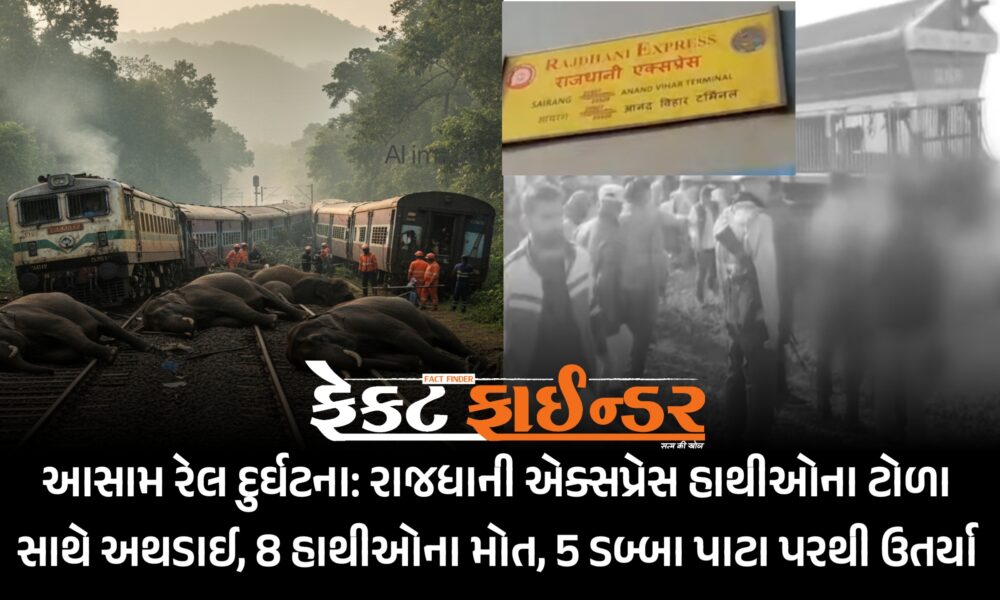 આસામના લુમડિંગ ડિવિઝનમાંથી એક અત્યંત દુ:ખદ અને આંચકાજનક સમાચાર સામે આવી રહ્યા છે. આજે શનિવારે વહેલી સવારે સૈરંગ-નવી દિલ્હી રાજધાની એક્સપ્રેસ જંગલી હાથીઓના ટોળા સાથે અથડાતા...