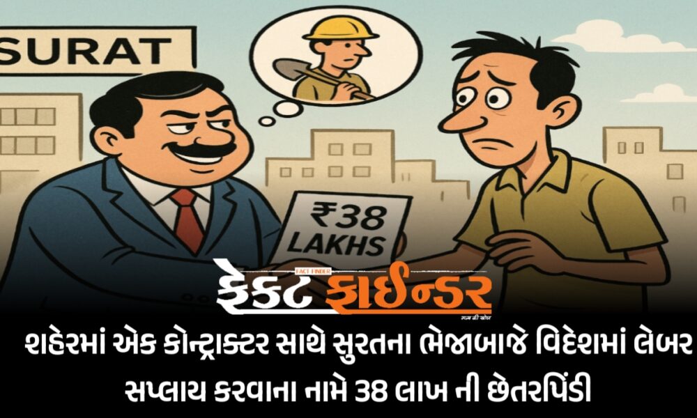 સિંગાપોરમાં લેબર સપ્લાય કરવાના નામે વડોદરાના કોન્ટ્રાક્ટર સાથે 38 લાખની છેતરપિંડી.. વડોદરાના એક કોન્ટ્રાક્ટર સાથે સુરતના ભેજાબાજે વિદેશમાં લેબર સપ્લાય કરવાના નામે 38 લાખ જેટલી રકમ...