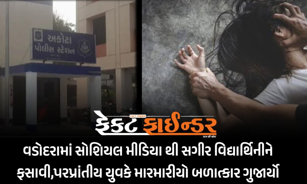 વડોદરા અકોટા પોલીસના જણાવવા પ્રમાણે, સગીર વયની વિદ્યાર્થીની બે મહિના પહેલા સોશિયલ મીડિયાના માધ્યમથી એક અજાણ્યા યુવકના સંપર્કમાં આવી હતી. શહેરના અકોટા વિસ્તારમાં સગીર વિદ્યાર્થીનીને સોશિયલ...