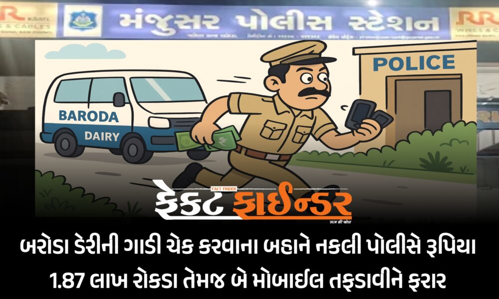 વડોદરામાં ગત મોડી રાત્રે દૂધની ગાડીમાં દારૂની હેરાફેરી કરો છો તેમ કહી નકલી પોલીસનો 1.87 લાખ રોકડ અને બે મોબાઈલનો તોડ વડોદરા નજીક્ દુમાડ ગામ પાસે...
