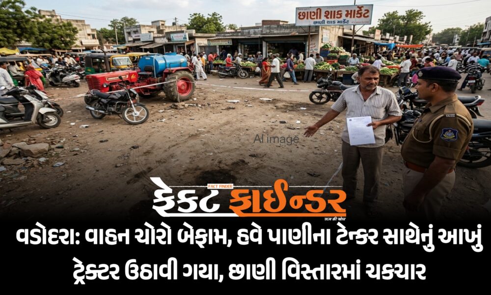 વડોદરા: વાહન ચોરો બેફામ, હવે પાણીના ટેન્કર સાથેનું આખું ટ્રેક્ટર ઉઠાવી ગયા, છાણી વિસ્તારમાં ચકચાર
