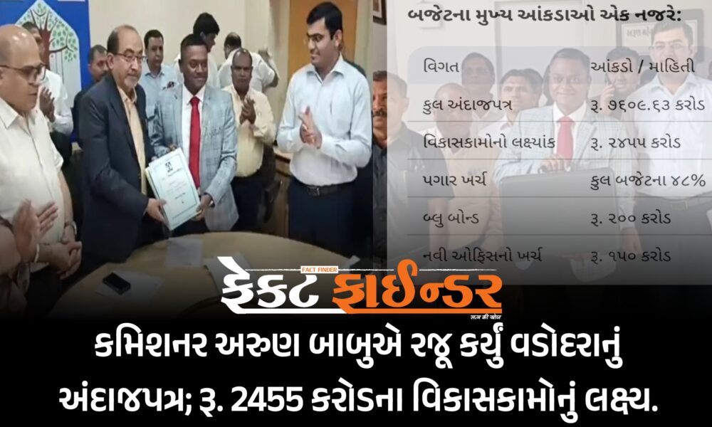 વડોદરાના નગરજનો માટે આજે મહત્વનો દિવસ છે. મ્યુનિસિપલ કમિશનર અરુણ બાબુએ આગામી નાણાકીય વર્ષ 2026-27 માટે વડોદરા કોર્પોરેશનનું રૂ. 7,609.63 કરોડનું ભવ્ય ડ્રાફ્ટ અંદાજપત્ર સ્થાયી સમિતિ...