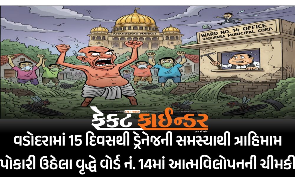 વડોદરાના રાવપુરા વિધાનસભા વિસ્તારમાં તંત્રની ઘોર બેદરકારી સામે આવી છે. વાડી વિસ્તારમાં છેલ્લા 15 દિવસથી ડ્રેનેજની ગંદકીથી પરેશાન એક વૃદ્ધે આખરે તંત્રને જગાડવા માટે આત્મવિલોપનની ચીમકી...