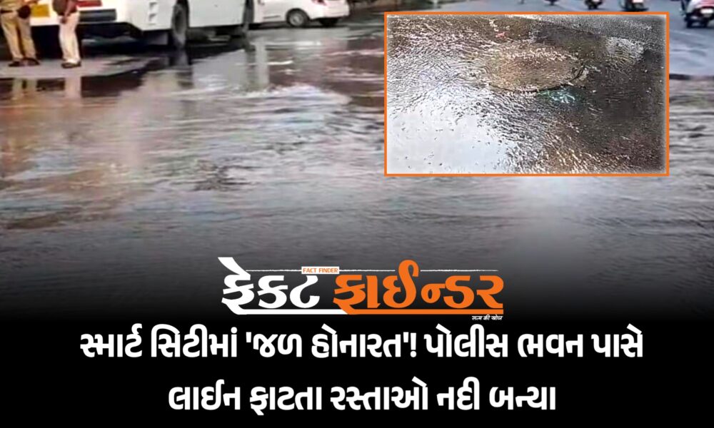 સ્માર્ટ સિટીમાં ‘જળ હોનારત’! પોલીસ ભવન પાસે લાઈન ફાટતા રસ્તાઓ નદી બન્યા
