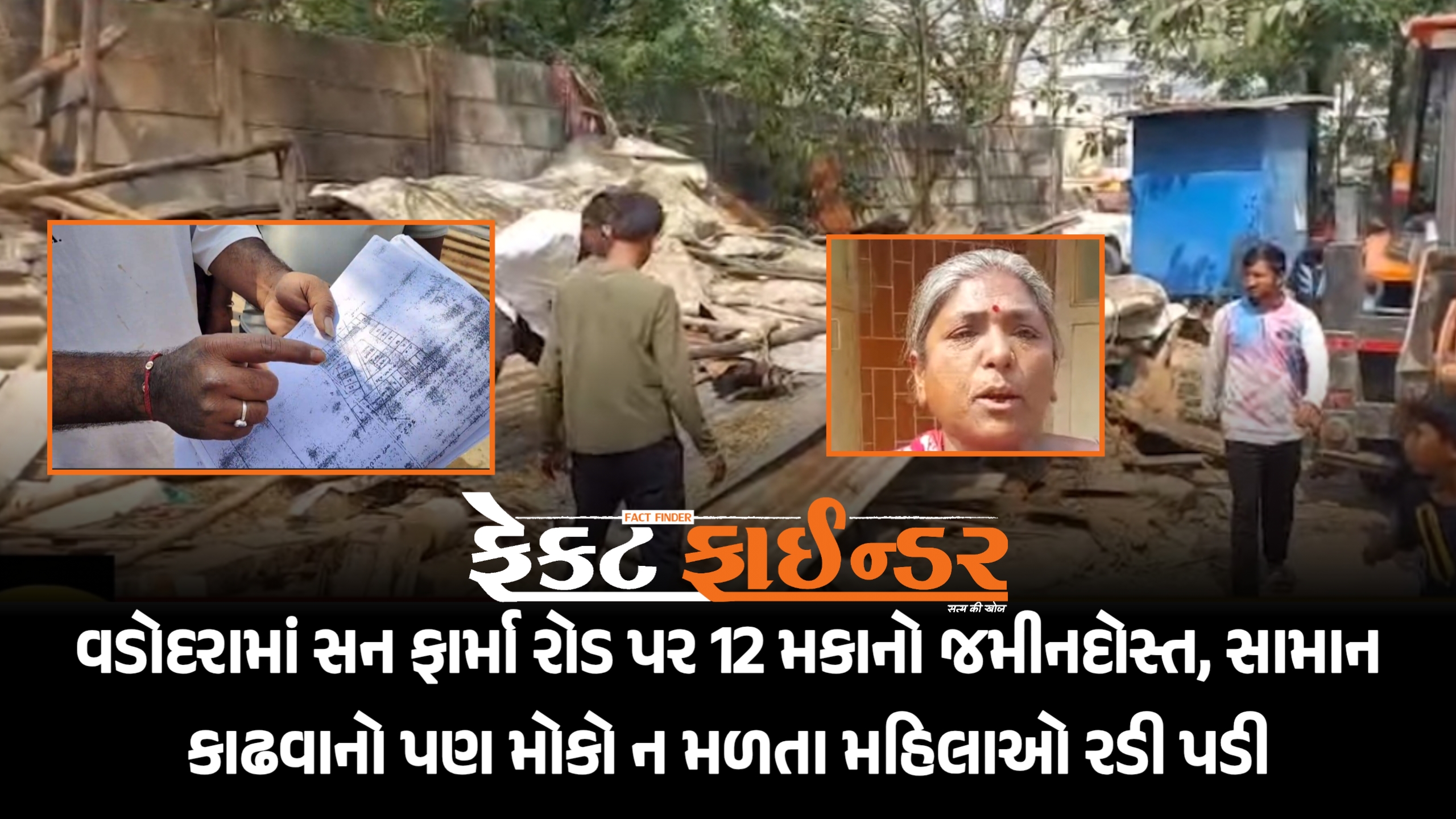 વડોદરામાં સન ફાર્મા રોડ પર 12 મકાનો જમીનદોસ્ત, સામાન કાઢવાનો પણ મોકો ન મળતા મહિલાઓ રડી પડી
