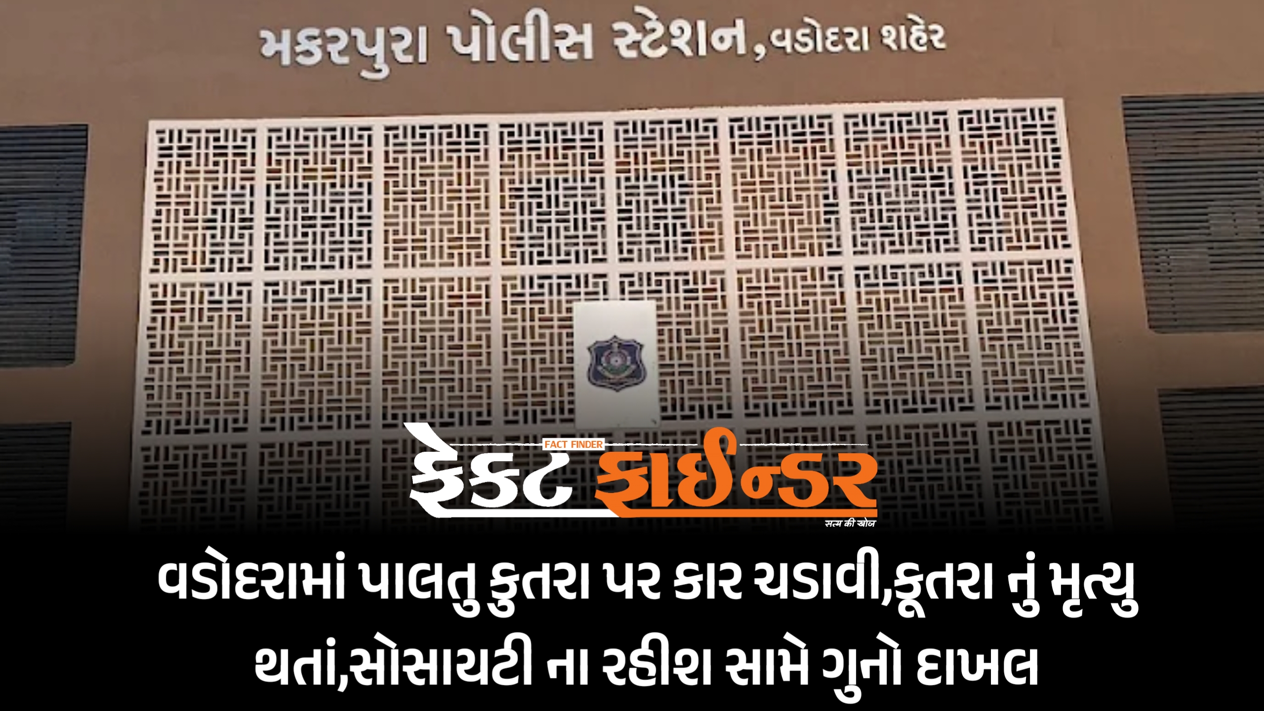 વડોદરામાં પાલતુ કુતરા પર કાર ચડાવી,કૂતરા નું મૃત્યુ થતાં,સોસાયટી ના રહીશ સામે ગુનો દાખલ