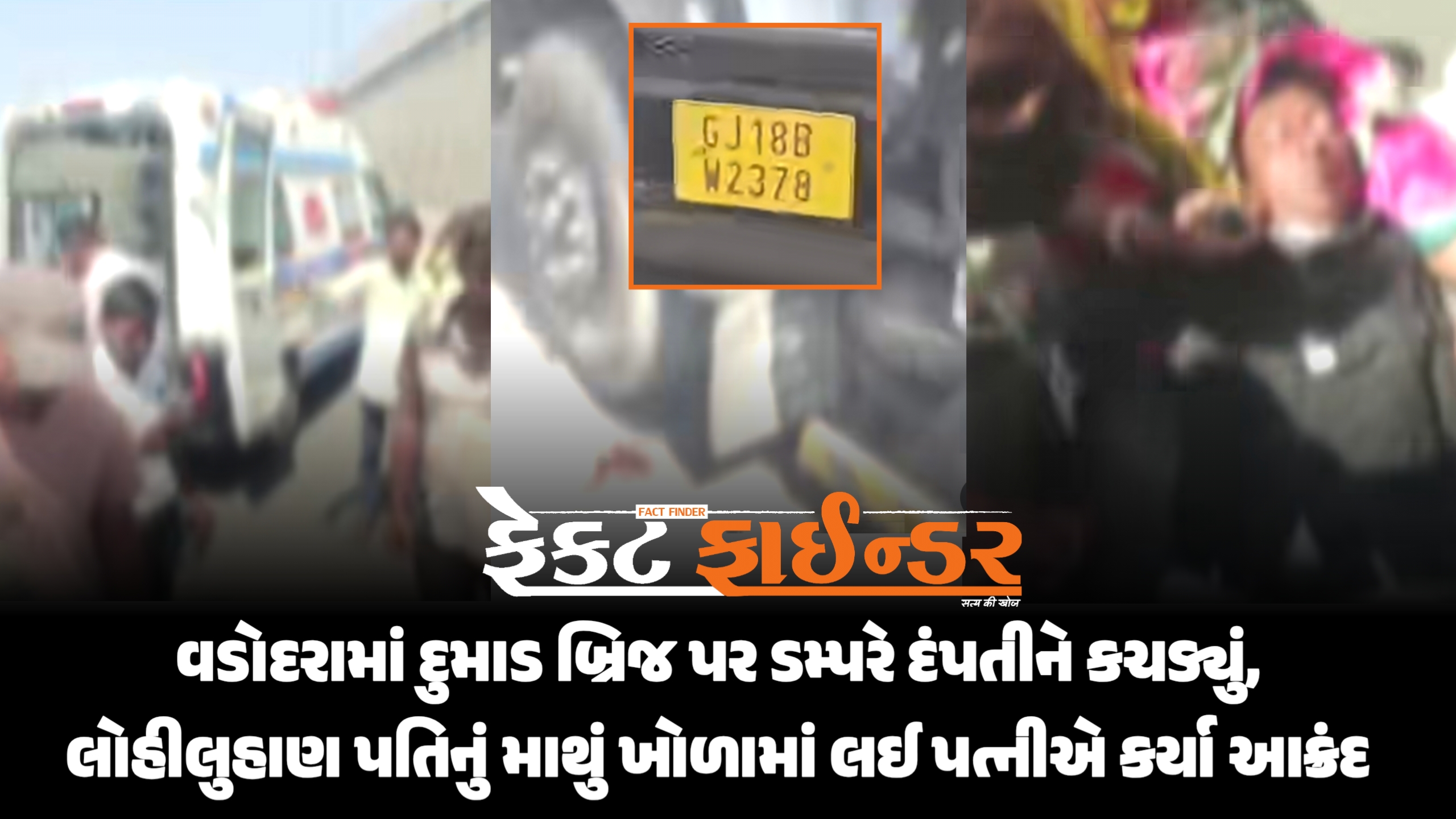 વડોદરામાં દુમાડ બ્રિજ ડમ્પરે દંપતીને કચડ્યું, લોહીલુહાણ પતિનું માથું ખોળામાં લઈ પત્નીએ કર્યા આક્રંદ