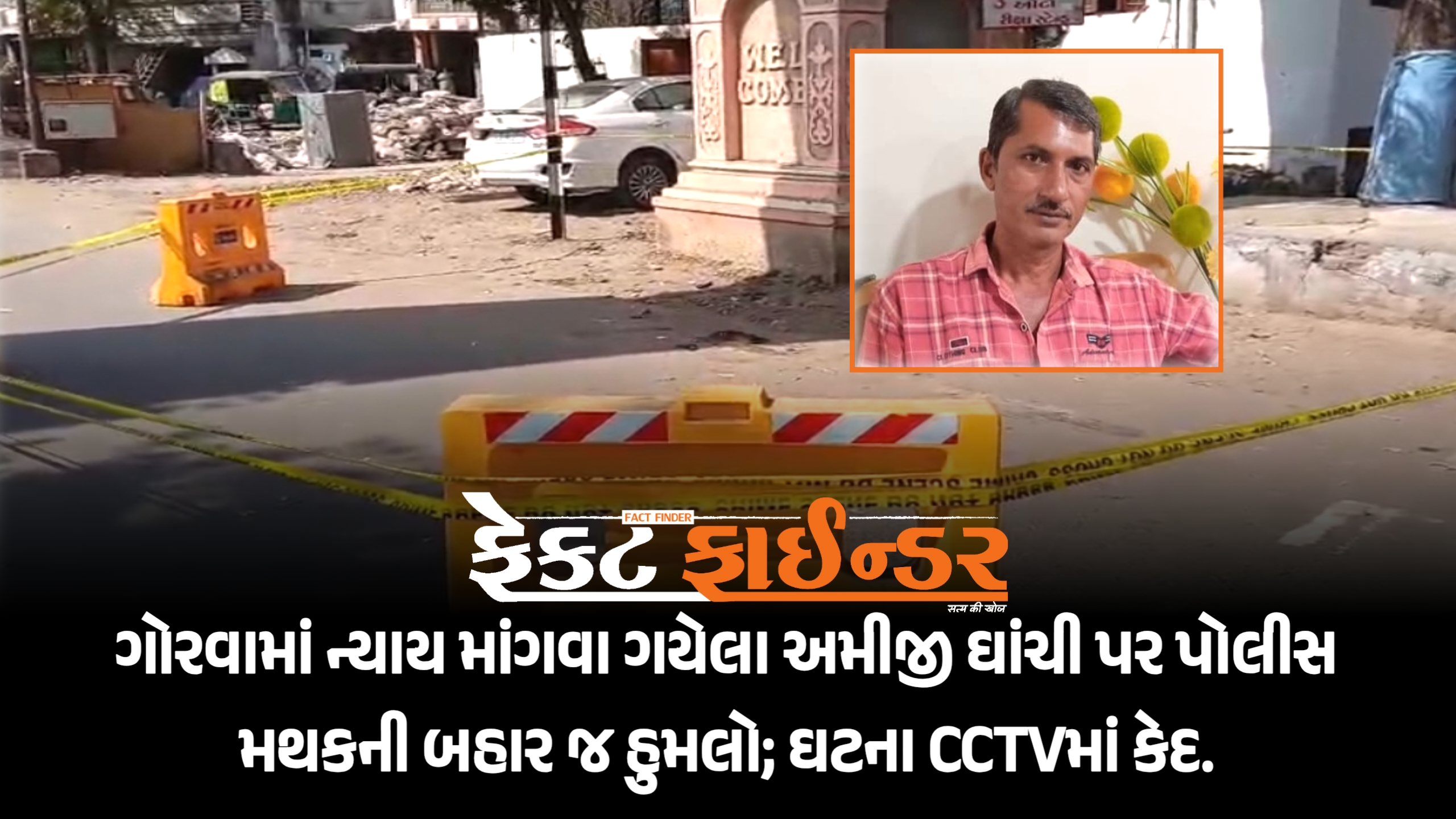 ગોરવામાં ન્યાય માંગવા ગયેલા અમીજી ઘાંચી પર પોલીસ મથકની બહાર જ હુમલો; ઘટના CCTVમાં કેદ.