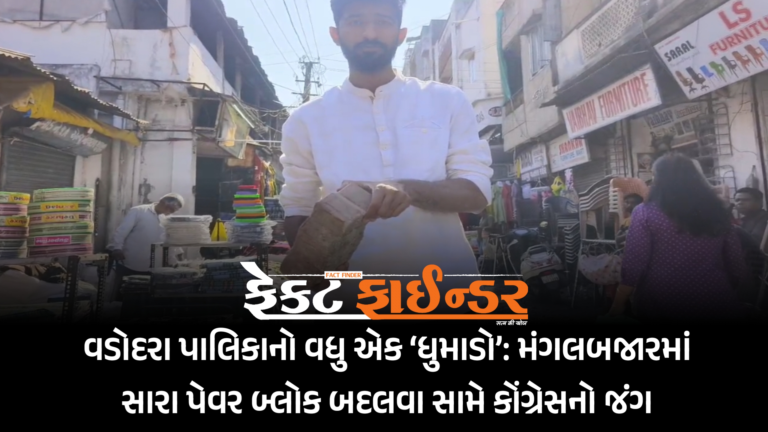વડોદરા પાલિકાનો વધુ એક ‘ધુમાડો’: મંગલબજારમાં સારા પેવર બ્લોક બદલવા સામે કોંગ્રેસનો જંગ